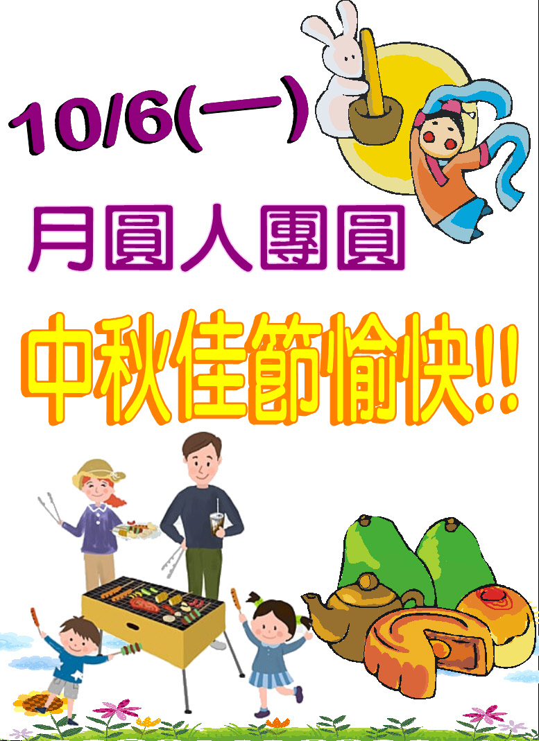 10/4(六)~10/6(一) 中秋節連假三天